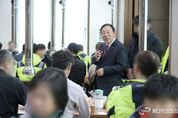 케나프데일리 이은성 기자 | 최민호 세종특별자치시장이 새해를 맞아 환경 관리 일선에서 묵묵히 근무하는 환경관리원들의 노고를 격려하고 감사의 마음을 전했다. 최민호 시장은 12일 연기면 소재 식당에서 시 환경관리원과 운전직 공무원 등 80여 명과 오찬을 함께하며 새해 인사를 전했다. 이 자리에서 최 시장은 시민을 위해 쾌적한 생활환경 조성을 책임지고 있는 현장 근로자들에게 깊은 감사를 표했다. 또 환경관리원과 운전직 공무원에게 안전이 최우선임을 강조하고 안전 장비 착용과 철저한 작업 수칙 준수를 당부했다. 최민호 시장은 “위생적이고 청결한 도시에서 살아갈 수 있는 건 여러분들의 노고 덕분”이라며 “구내식당 조성 등 여러분의 노고에 답할 수 있는 복지 마련을 위해 노력하겠다”고 말했다. 시는 환경관리원을 대상으로 현장 중심 소통을 강화하고 환경관리 업무의 안정적 추진과 근무 만족도 향상에 지속 노력한다는 방침이다.