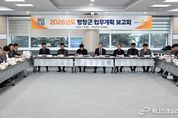 케나프데일리 이은성 기자 | 평창군은 9일 군청 대회의실에서 군수, 부군수를 비롯한 부서장들이 참석한 가운데 2026년도 업무 계획 보고회를 개최했다. 보고회는 2025년도 부서별 주요 성과와 2026년도 주요 업무 계획을 공유하고 부서 간 협업할 사항을 토론하는 시간으로 진행됐다. 군은 2025년 주요 성과로 ▲다 키워드림, 1억 5천 평창플랜 시행 ▲평창형 교육 발전 특구 시범 지역(국비 69억 원) 본격 사업 추진 ▲2025년 세계올림픽도시연맹 총회 성공개최 ▲강원 그린바이오 벤처캠퍼스 착공 및 그린바이오 산업 V밸리 지정 ▲다 보살펴드림, 해피700억 평창플랜 시행 ▲디지털 헬스케어센터 개소 및 원격 협진 운영 ▲외국인 계절근로자 확대 도입(290개 농가, 근로자 932명) ▲진부면 도시재생 공모사업 선정(총사업비 270억 원) 등을 꼽았다. 평창군은 2026년도에는 평창에 살아보기 체험 확대로 지역 내 생활 인구를 확충하고, 그린바이오 특화산업을 활성화하여 일자리 창출과 맞춤형 임대주택 보급 확대 등을 통해 정주 여건 개선에 집중하고, 오는 9월에 개최하는 제34회 강원특별자치도민생활체육대회, 10월에